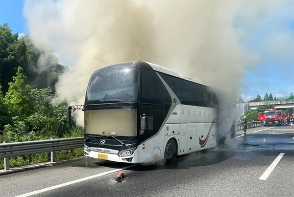 驚險!54座大客車高速起火!司機沉著應對化解危險!