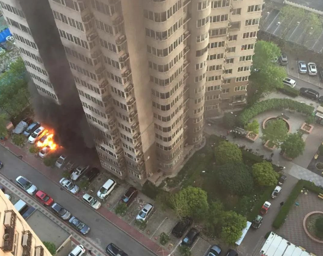 2020年4月23日早上,朝陽區(qū)百環(huán)花園小區(qū)樓下停放的兩輛私家車突然起火,火勢十分兇猛。道路兩旁停滿了私家車,擠占了消防通道,導(dǎo)致4輛消防車都被堵在進(jìn)去的路上,消防員只能在車樓之間接了三十多米長的水帶救火。現(xiàn)場大火波及了周邊停放的幾輛車,其中一輛車燒得只剩外殼,一層住戶的陽臺窗戶也被燒光。