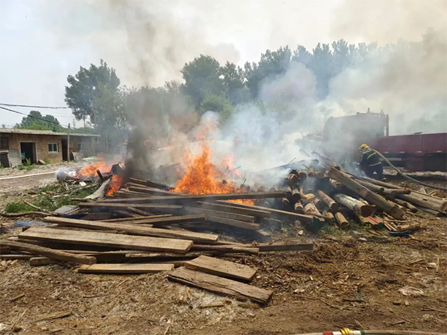 2024年5月4日上午,北京市通州區(qū)西集鎮(zhèn)馮各莊市場(chǎng)東側(cè)路邊的草地突然起火,火勢(shì)迅速蔓延至附近的木頭堆垛。接到報(bào)警后,北京市119指揮中心迅速反應(yīng),調(diào)派西集消防救援站以及附近微型消防站共計(jì)3輛消防車和22名消防隊(duì)員火速趕往現(xiàn)場(chǎng)進(jìn)行撲救。同時(shí),郎府派出所也迅速派出警車和民警協(xié)助處理火情。
