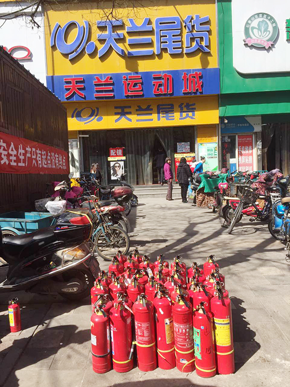2017年4月12日京陽公司為合作單位天蘭工廠店提供滅火器年檢服務(wù)。