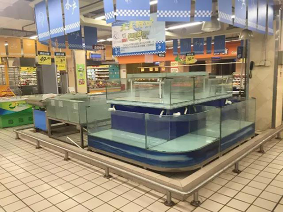 擺放在貨架上的商品品類也殘缺不全,水產(chǎn)柜臺已經(jīng)撤離。在超市內(nèi),除了工作人員外,顧客屈指可數(shù)。