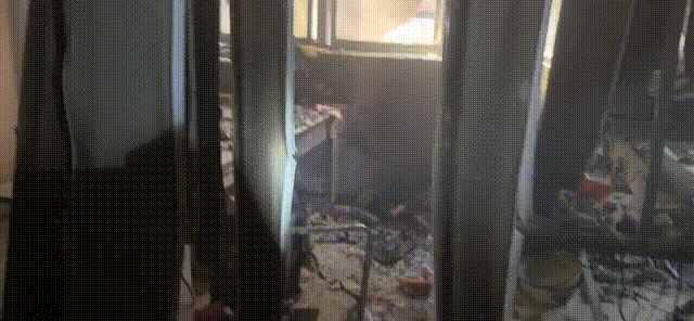 窗戶內(nèi)不斷冒出滾滾濃煙