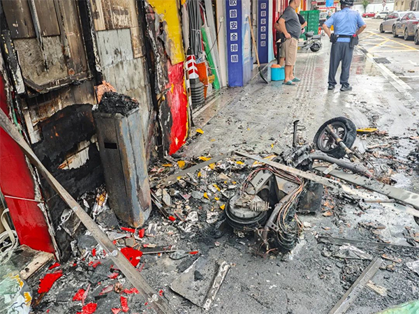 消防員們緊急疏散了周邊受火勢威脅的群眾至安全地帶。緊接著架設起兩支高壓水槍,有效阻止了火勢向店鋪內(nèi)部及樓上住宅的進一步蔓延。十分鐘后,明火被撲滅,現(xiàn)場并無人員傷亡。火災燒損一輛電動自行車,及兩間店鋪外裝飾。起火原因經(jīng)初步調(diào)查,認定為電動自行車充電期間故障引發(fā)。
