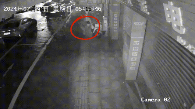 凌晨5時14分,一名男子悄然出現(xiàn)在畫面中,他將一輛電動自行車停放在了該店鋪的旁邊,擅自拔掉了充電寶的插頭,轉(zhuǎn)而為自己的電動自行車進行充電。5時15分左右,該男子便匆匆離開了現(xiàn)場。