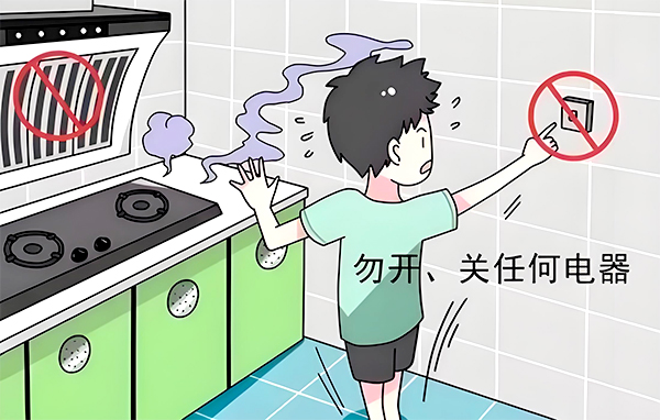 ●千萬(wàn)不要開(kāi)啟任何電器,謹(jǐn)防電器開(kāi)關(guān)的電火花引發(fā)燃?xì)忾W爆;