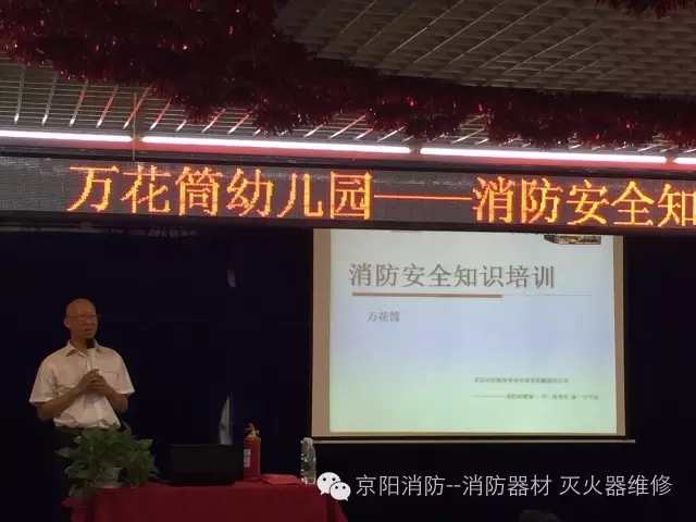 京陽消防為企業(yè)家智慧兄弟企業(yè)萬花筒幼兒園免費消防培訓服務