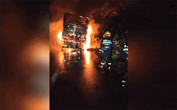 在行駛途中突然起火燃燒
