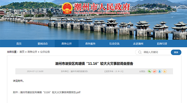《潮州市潮安區(qū)鳳塘鎮(zhèn)“11·16”較大火災(zāi)事故調(diào)查報(bào)告》