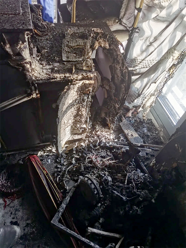 火災源頭為充電底座因線路故障引發(fā)自燃