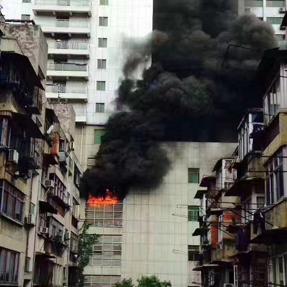 一樓一家賣服裝的商店里還有刺鼻的煙味。該店工作人員介紹,下午4點左右,她突然發(fā)現(xiàn)店內(nèi)充滿濃煙,隨即聽到消防車的警報聲,出門查看才知5樓起火。她用手機拍攝的現(xiàn)場視頻顯示,事發(fā)時,5樓窗口冒出滾滾濃煙,濃煙中可見明火。
