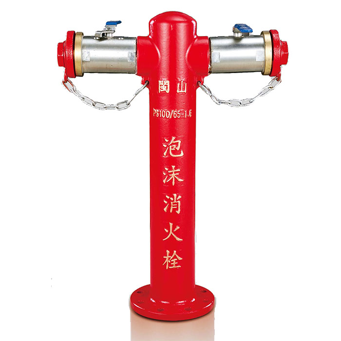 泡沫消火栓是泡沫滅火系統(tǒng)中的重要裝置之一,特別適用于大面積有火災(zāi)危險的易燃液體和可燃液體的產(chǎn)生,貯存和使用場所。泡沫消火栓主要由法蘭、筒體、球閥、內(nèi)接、消防管牙及端蓋組成。地上式泡沫消火栓根據(jù)法蘭接口分為PSS80-65X2、PSS100-65X2、PSS150-65X2三種型號。泡沫消火栓額定工作壓力為1.6MPa范圍內(nèi)。