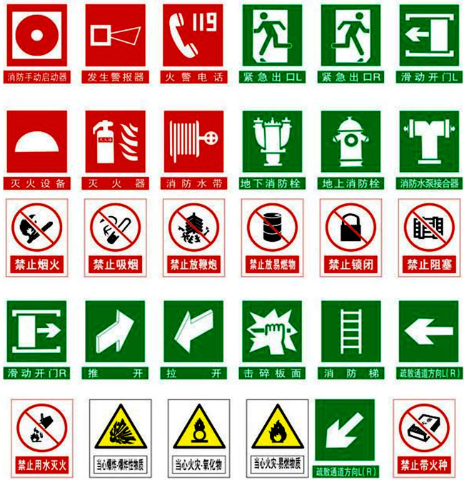 本標準規(guī)定了與消防有關的安全標志及其標志牌的制作、設置位置。本標準的應用領域要盡可能廣泛地擴大到需要或者應該的一切場所,以向公眾表明下列內容的位置和性質:A.火災報警和手動控制裝置;B.火災時疏散途徑;C.滅火設備;D. 具有火災、爆炸危險的地方或物質。